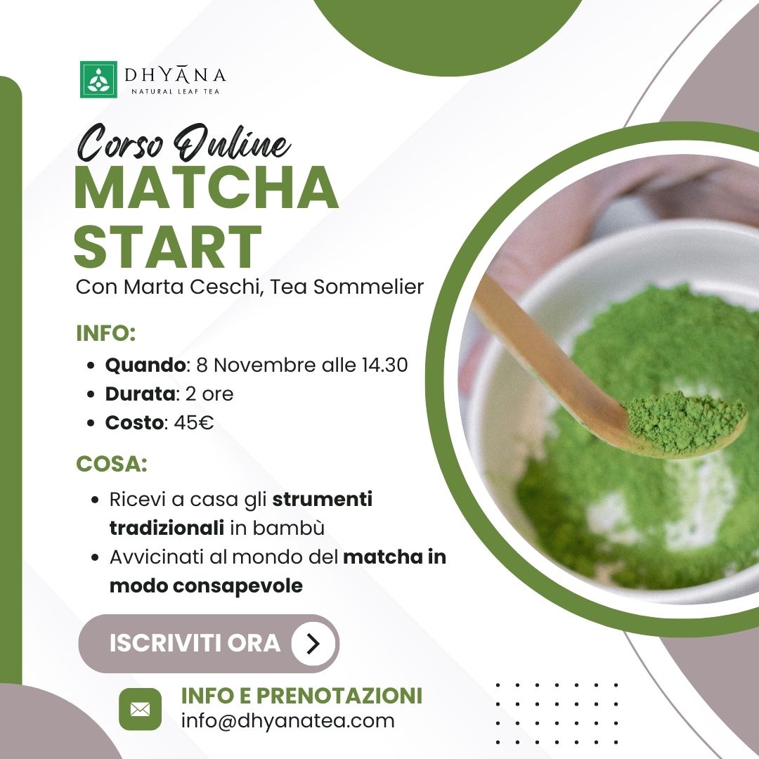 Per ogni ulteriore informazione, per consigli sugli accessori e sul tipo di tè matcha da utilizzare durante il corso, contatta Marta mandando una mail all'indirizzo info@dhyanatea.com. Ti aspettiamo!
